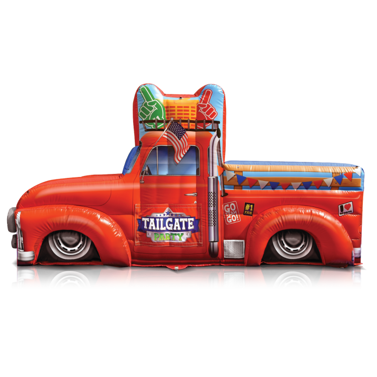 Rev up the fun and bring the ultimate game-day experience to your next event with the EyeCandy Inflatables Tailgate Truck Combo! This one-of-a-kind inflatable is designed like a classic tailgate truck and packed with interactive games that bring out everyone’s competitive side. It’s the perfect centerpiece for any party that wants BIG energy without the bounce house.