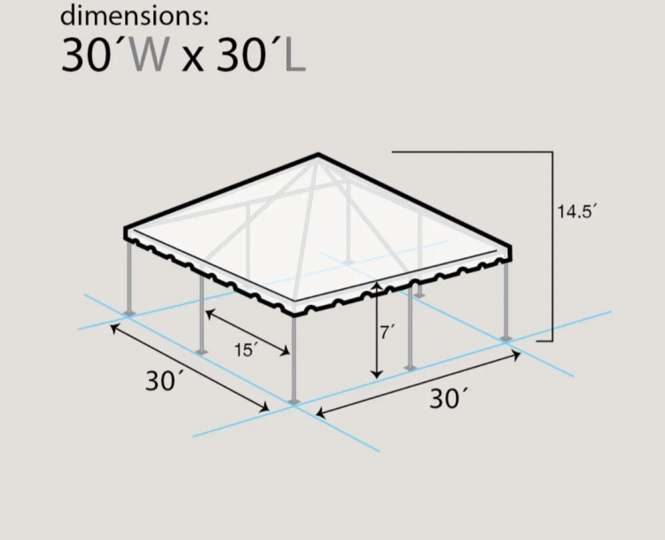 •      Actual Size: 30ft L x 30ft W x 14.5ft H Center, Eave Ht 7 ft